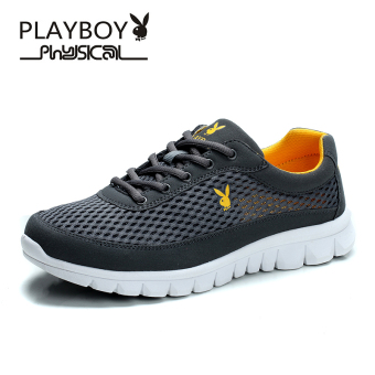 Jual PLAYBOY Korea bernapas inlet panel sepatu pria sepatu (Abu-abu gelap jaringan tunggal) Baru