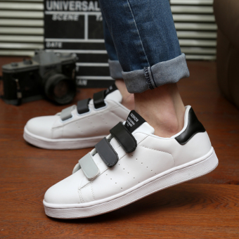 Beli Korea Fashion Style putih laki-laki pasang sepatu Velcro sepatu pria (Dan putih abu-abu) Ori