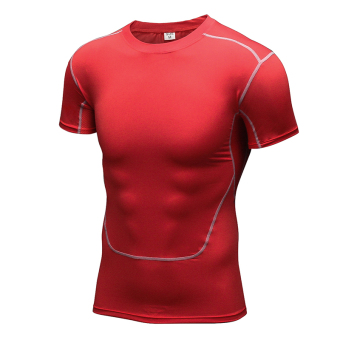 Harga Kebugaran pria legging pelatihan lengan pendek kebugaran pakaian legging pakaian (Pinggang model merah) Ori