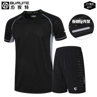 Harga LOOESN pria musim panas lengan pendek cepat kering pakaian (217 hitam + 271 setelan celana pendek)