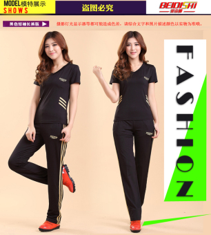 Jual MM kebugaran Room perempuan lengan pendek celana panjang joging pakaian kebugaran pakaian (Hitam (pinggang bar model)) Online