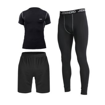 Jual Laki-laki baru lengan pendek cepat kering pelatihan pakaian kebugaran pakaian (6138B abu-abu tiga potong) Ori